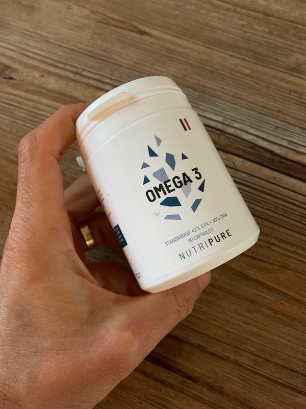 Pour mes douleurs articulaires et plus précisément au niveau des genoux, lors de ma consultation avec le Docteur Aumont, médecin du PSG et expert en nutrition, il m’a été conseillé de rajouter des Oméga 3 dans mon alimentation. Et notamment des matières grasses que j’ai trouvé dans le saumon, mais aussi dans l’huile de noix, les graines de chia… Et des antioxydants, que l’on retrouve dans la majorité des légumes, et qui ralentissent le phénomène de vieillissement cellulaire pour contribuer à des articulations en bonne santé. Et enfin, Nutripure m’a proposé de rajouter trois à six gélules gélules d’Omega 3. Des capsules d’Oméga 3 issues de l’huile de poisson la plus pure et la plus concentrée que vous pourrez trouver. Les poissons sélectionnés ici sont issus de zones de pêches raisonnées Friend of the Sea. Et c’est aussi cette gélule qui m’a permis d’entretenir et de développer ma musculature pendant cette période de quatre semaines de cure. Et c’est bien ce quatuor qui m’a permis de retrouver une plus grande souplesse articulaire confirmée elle-même par des tests en salle de renforcement chez le kinésithérapeute.