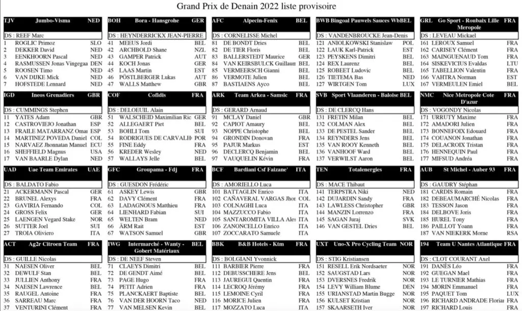 La liste des engagés du Grand Prix de Denain – Porte du Hainaut 2022
