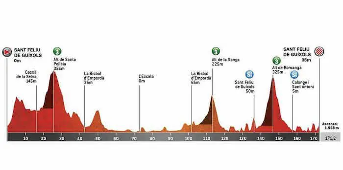 Lundi 21 mars – Etape 1 : Sant Feliu de Guixols / Sant Feliu de Guixols (171,2 km)
