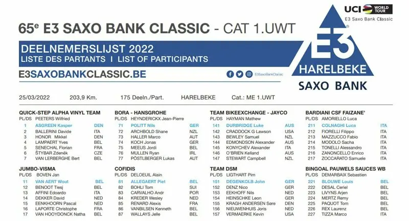 Partager la publication "PROS – GP E3 Saxo Bank Classic : le parcours, le profil, les monts, les engagés et les horaires de diffusion TV"