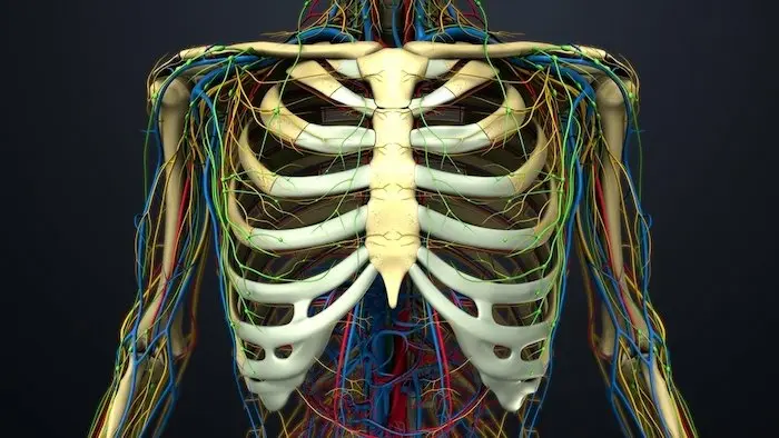 La cage thoracique est une zone anatomique constituée par le rachis dorsal en arrière, les côtes, latéralement et le sternum en avant. Ensuite, des muscles rachidiens et des intercostaux vont assurer la stabilité et les mouvements de cette cage destinés aux mouvements ventilatoires, qui est fermée en bas par le muscle diaphragme qui l’isole de l’abdomen.