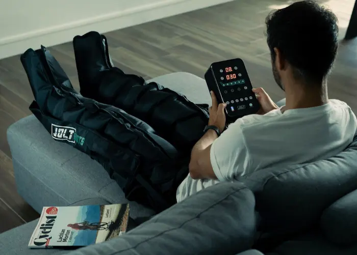 Il est souvent conseillé dans les salles de sport de faire une pause d’un jour après une séance intense focalisée sur les jambes. Cela permet aux muscles de récupérer correctement pour éviter les inflammations. Grâce aux bottes de Jolt, ceci n’est plus nécessaire ! JOLT™ Boots fonctionne sur le principe de la pressothérapie pour éliminer les déchets métaboliques qui s’accumulent dans les jambes.