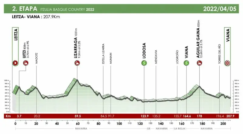Mardi 5 avril – 2e étape : Leitza – Viana (207,9 km)