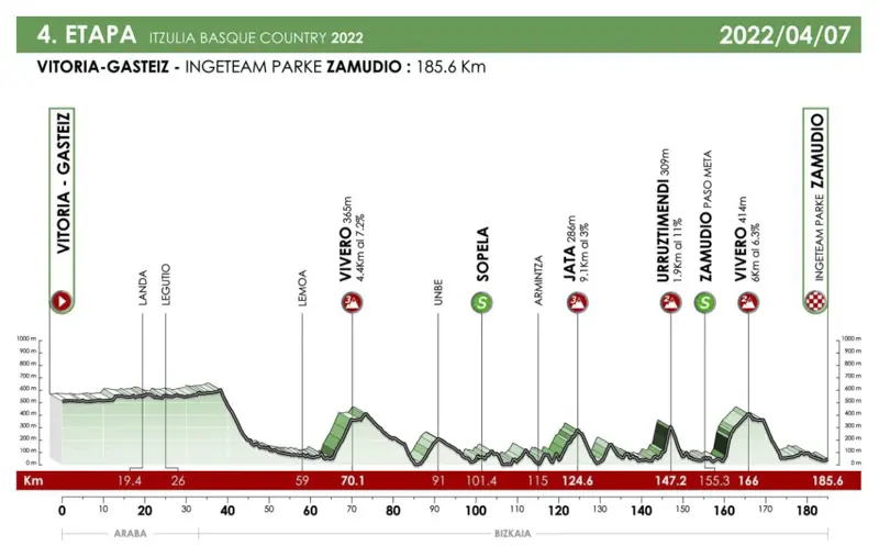 Jeudi 7 avril – 4e étape : Vitoria-Gasteiz – Zamudio (185,6 km)