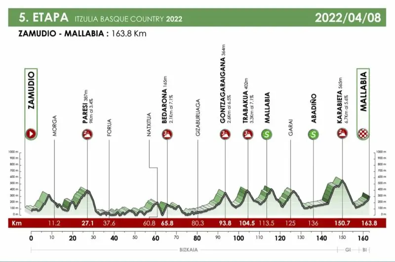 Vendredi 8 avril – 5e étape : Zamudio – Mallabia (163,8 km)