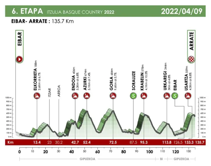 Samedi 9 avril – 6e étape : Eibar – Arrate (135,7 km)
