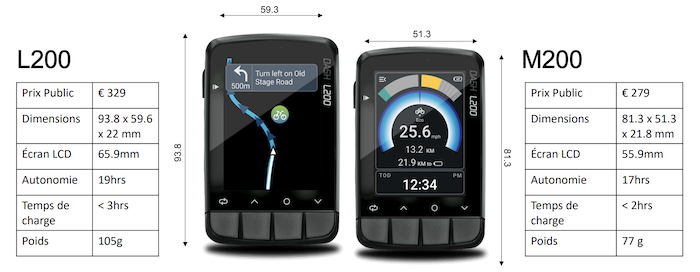 Dash est le compteur GPS pour cyclisme le plus puissant du monde. Doté d’un écran couleur très haute définition, écrans intuitifs, facile à utiliser avec des caractéristiques spécifiques au vélo uniques au compteur GPS Dash. Les deux compteurs/GPS Dash L200 et M200 améliorent chacune de vos sorties.
