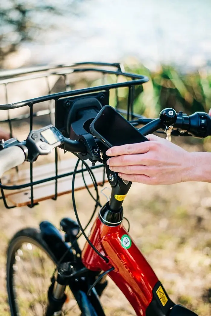 La coque robuste s’emboîte sur la fixation en une seconde d’une seule main et vous permet d’avoir votre smartphone très solidement fixé sur la potence pendant que vous roulez. Le support de fixation est discret, son installation facile et le système de verrouillage est ultra performant : votre iPhone reste solidement accroché dans toutes les situations. Le smartphone et sa coque se retirent de la fixation tout aussi rapidement et facilement !