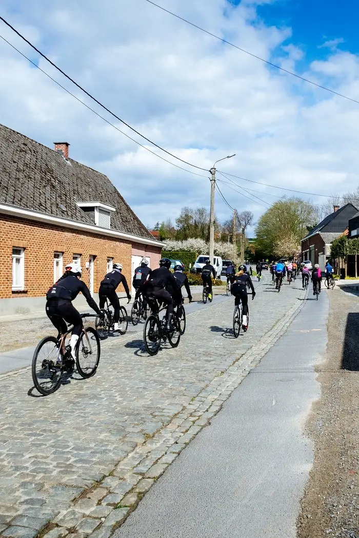 Si les pavés en eux-mêmes ne sont pas aussi exigeants que ceux de Paris-Roubaix, leur accumulation et la pente qui est parfois très forte, épuise les organismes. En mettant les roues pour la première fois sur ce circuit, l’image des coureurs professionnels revient forcément. L’amateur de cyclisme reconnait forcément ces lieux, théâtre de luttes entre grands champions. Comme souvent, l’impression de facilité laissée par des coureurs tels que Museeuw, Sagan, Gilbert ou Van der Poel fait imaginer qu’il ne s’agit que de « bosses ». La réalité est toute autre, il faut forcément s’employer sur chaque secteur, même avec des braquets adéquats. Au fil des kilomètres, cela finit par peser dans les jambes. Et dire, que pour « la gagne » sur le Tour des Flandres, il faut encore être capable de tout donner après 250 km d’une lutte de chaque instant, étant donné l’importance du placement…