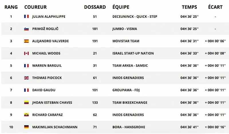 Le classement de la Flèche Wallonne 2021
