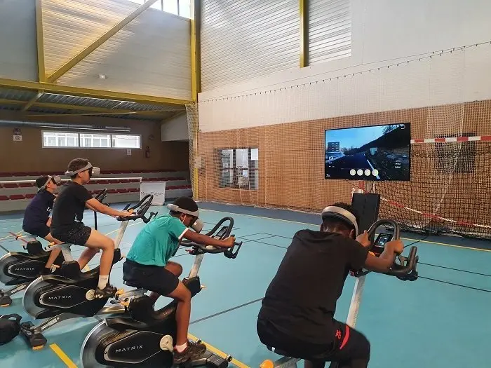 Dans les salles de sport, le kit Pro-2 peut être couplé à une seconde application sur écran qui permet de contrôler les casques à distance, partager l’expérience de l’utilisateur, créer une course, ou tout simplement faire une séance sans utiliser la réalité virtuelle. Une tablette, un écran de TV ou même la console de certains vélos qu’on retrouve dans beaucoup de salles de sport peut jouer le rôle d’écran.