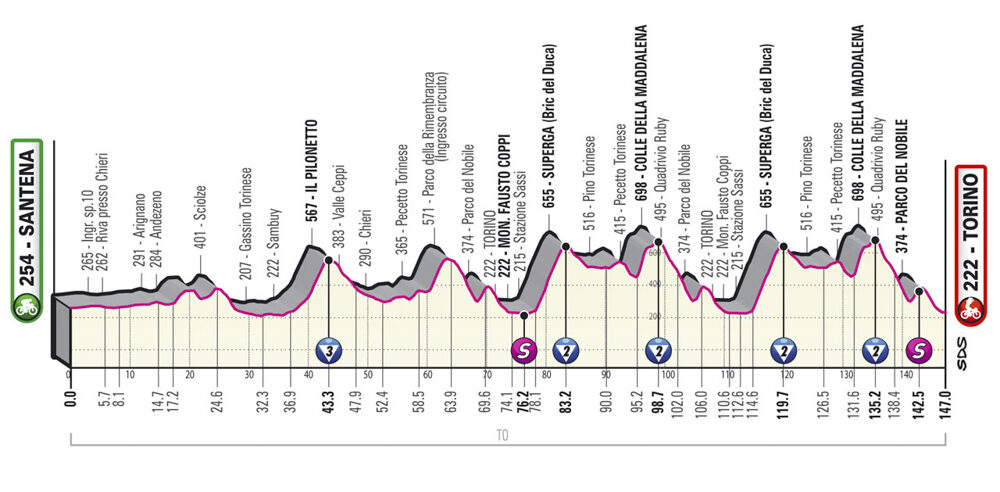 Étape 14 – samedi 21 mai : Santena – Turin (147 km)