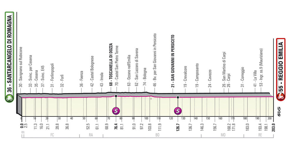 Étape 11 – mercredi 18 mai : Santarcangelo di Romagna – Reggio d’Emilie (203 km)