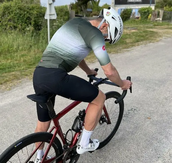 Sur la route, la conception du Free Aero RC et la qualité du tissu prennent tout leur sens, car l’ensemble parait faire totalement corps avec l’anatomie en mouvement. Même après près de 5 h de selle, le tissu ne se détend pas, et la peau reste parfaitement collée à l’entrejambe. On ne ressent aucun frottement désagréable, et l’épaisseur est suffisante pour une pratique dynamique et engagée. Au niveau des bretelles, le constat est identique, avec un maintien idéal et aucune gêne sur le long terme.