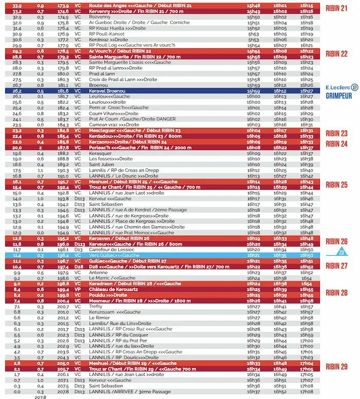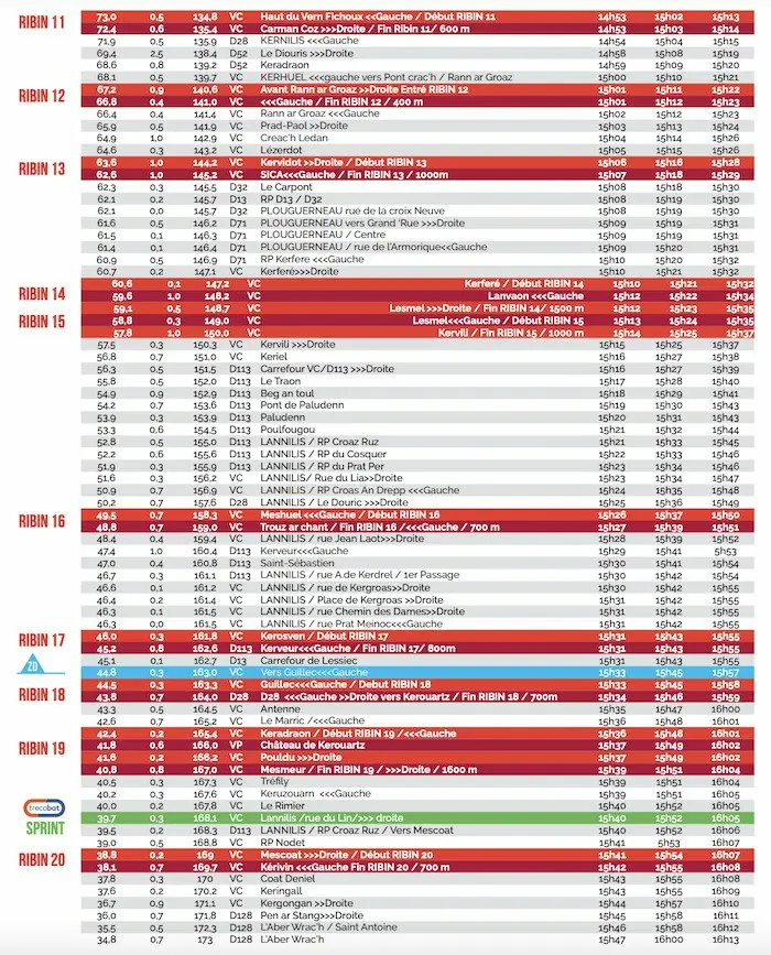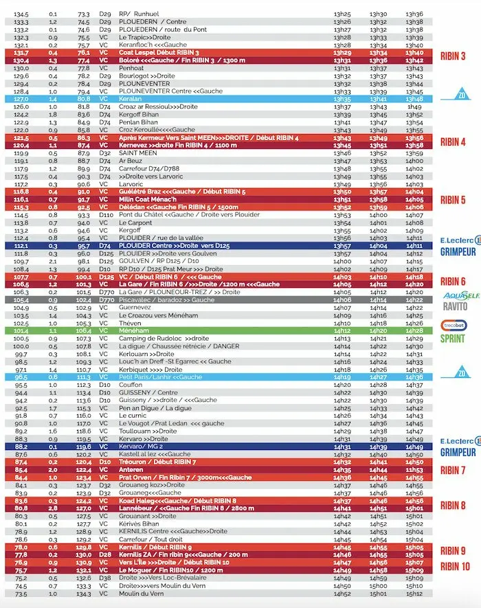 Les horaires de passages du Tro Bro Leon 2022
