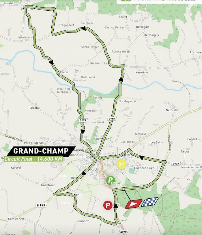 Le GP du Morbihan 2022 est la huitième manche de la Coupe de France des professionnels, et se déroule ce samedi 14 mai au départ de Grand-Champ (56). Retrouvez la carte du parcours, les horaires de passage, et la liste des engagés.