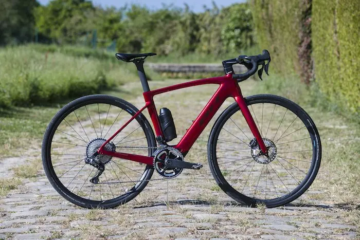 Il est décliné en quatre modèles, dont deux avec un cadre en aluminium (à partir de 3999 €) et deux avec un cadre carbone, dont ce très haut de gamme Pro 2.7 à 7299 €. Au menu, un groupe Shimano GRX Di2, des roues Shimano RX570 TR et des pneus Schwalbe G-One en 35 de section, un guidon FSA K-Wing AGX Carbon, une selle Prologo Dimension AGX et une batterie additionnelle XPro (sous forme de bidon placé sur le tube de selle) qui porte l’autonomie de l’assistance jusqu’à 220 kilomètres. Vendu 1500 € moins cher, le Pro 2.6 est équipé d’un groupe GRX à transmission par câbles, de roues RS370 TR, et n’est pas livré avec la batterie additionnelle, qui reste toutefois en option.
