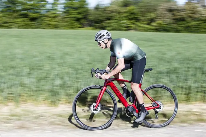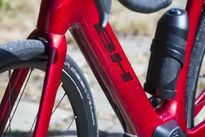 Ce système s’intègre parfaitement aux lignes générales du vélo, avec un cadre aux tubes profilés, des câbles et durites totalement incorporés au poste de pilotage et à la douille de direction, et une transmission électronique aux performances indiscutables. La machine est moderne et racée, mais souffre tout de même d’un poids conséquent. Cette version haut de gamme Pro 2.7 est pesée à 13,8 kg sans pédales, et il faut rajouter 980 g pour la batterie additionnelle XPro, soit un total de 15,3 kg avec les pédales, un compteur et un deuxième porte-bidon pour le vélo prêt à rouler, pour une sortie étalée sur toute la journée.