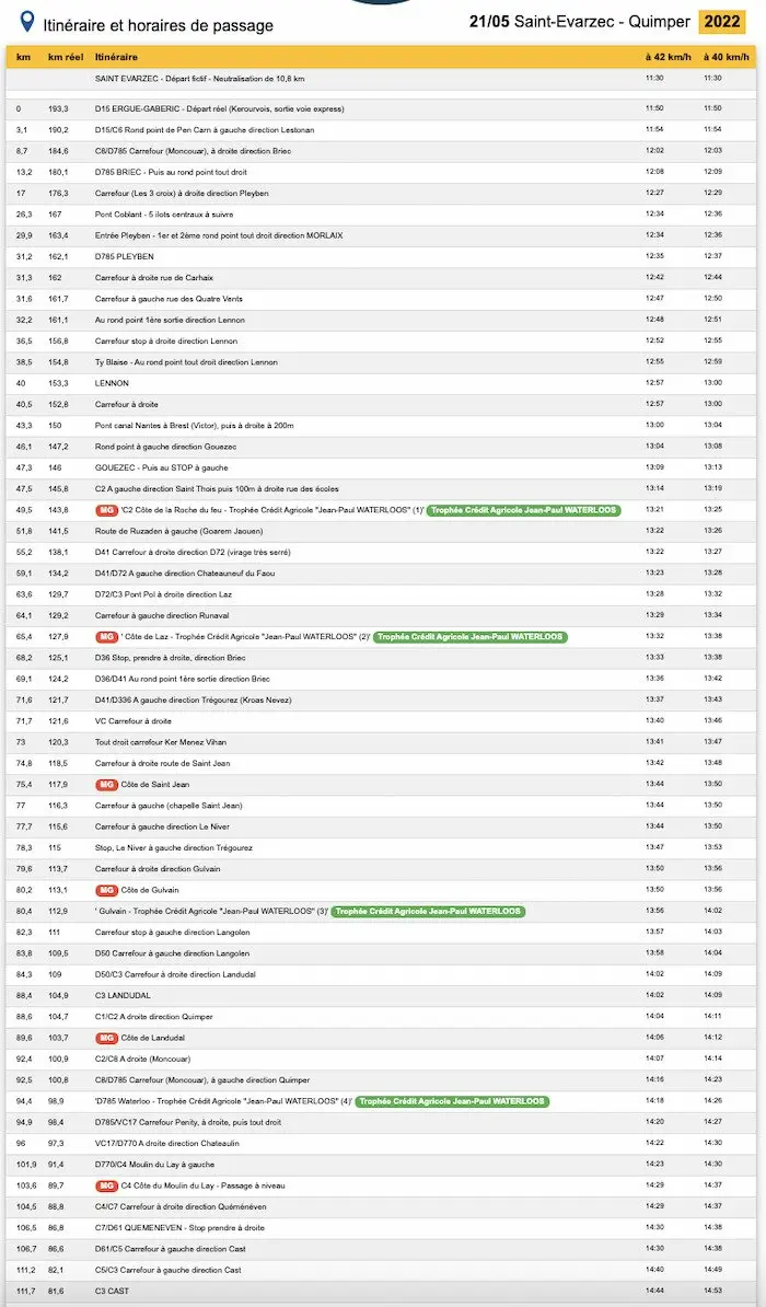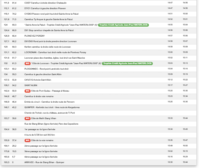 Les horaires de passage du Tour du Finistère 2022