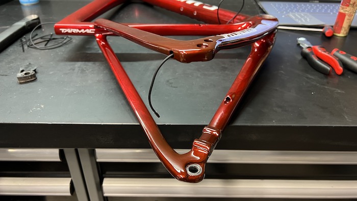 La partie la plus complexe de l’installation des freins concerne toujours le cheminement des durites à l’intérieur du poste de pilotage, de la douille de direction, de la fourche et du cadre.