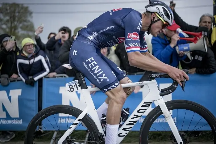 Le Canyon Aeroad est l’un des vélos emblématiques du peloton professionnel, ne serait-ce que parce qu’il l’équipe une de ses stars : Mathieu Van der Poel. Le palmarès de ce dernier avec entre autres le Tour des Flandres, une étape du Tour de France ou encore les Strade Bianche, fait d’ailleurs grimper ce vélo sur les podiums des plus grandes courses.
