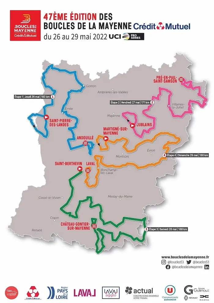 Partager la publication "PROS – Les Boucles de la Mayenne 2022 : le parcours, le profil des étapes, les horaires de diffusion TV et la liste des engagés"