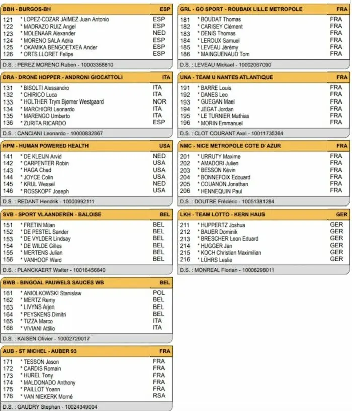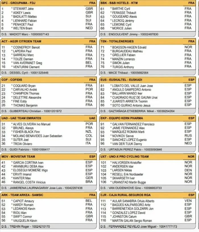 La liste des engagés des Boucles de la Mayenne 2022