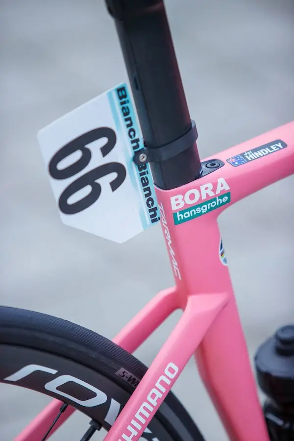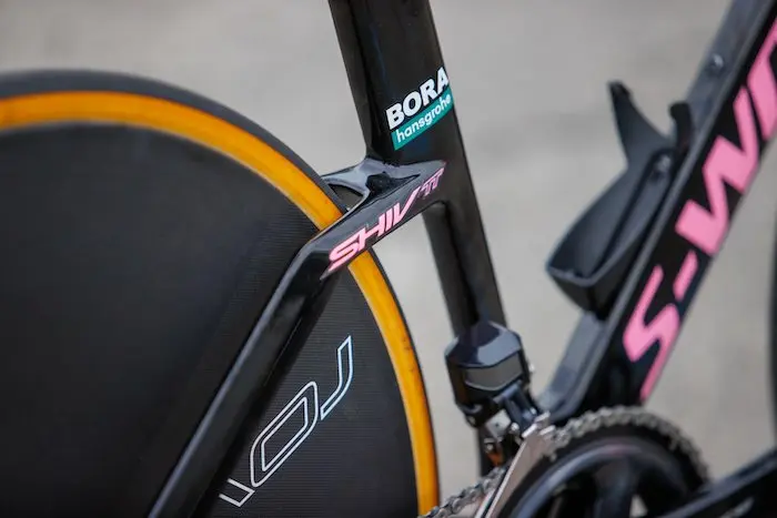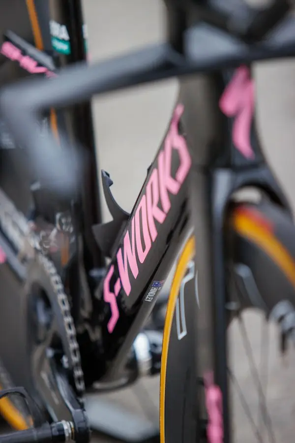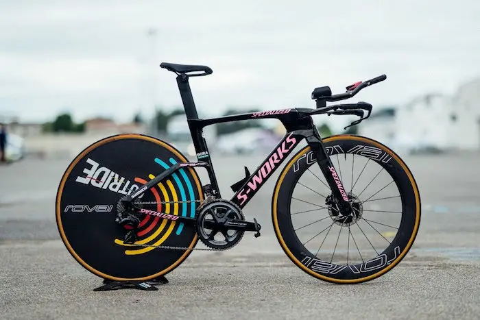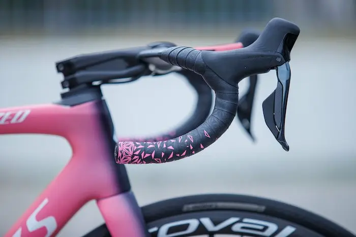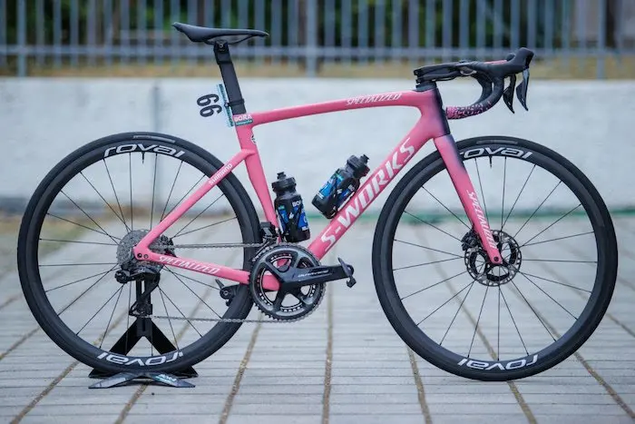 Au cours des étapes de montagnes, l’Australien a roulé avec son Tarmac SL7 avec les toutes nouvelles roues Roval Alpinist CLX II et des pneus tubeless. Pour le dernier contre-la-montre, Jai Hindley a roulé avec le Shiv TT, spécialement décoré pour l’occasion avec des logos roses.