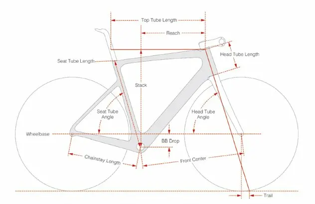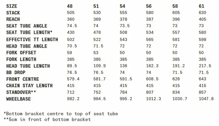 Le Caledonia-5 est proposé dans un rangement classique de six tailles, de 48 à 61. La géométrie est orientée vers l’endurance, mais il garde cependant des lignes sportives avec des tubes de forme aérodynamique, très travaillés, et aux épaisseurs toutes différentes. Le tube diagonal est surdimensionné tout comme le boitier de pédalier. Les bases et les fourreaux de la fourche sont épais alors que les haubans sont fins et abaissés. Ils viennent se raccorder assez bas sur le tube de selle pour jouer pleinement leur rôle de filtration des aspérités et secousses.