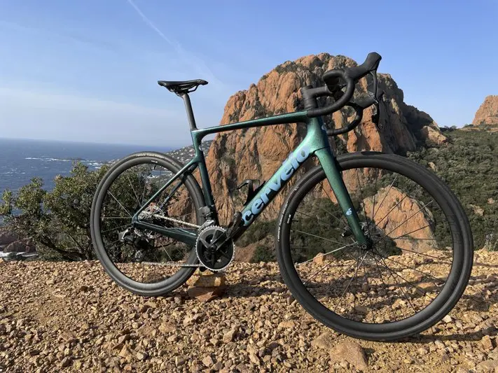 Le CERVÉLO CALEDONIA-5 en bref… Note :***** Les + : stabilité, confort, transmission et coloris oasis CADRE : Cervélo Caledonia carbone – FOURCHE : Cervélo Caledonia carbone – ROUES : DT Swiss E1800 32 Spline Tubeless Ready – PNEUMATIQUES : Vittoria Rubino Pro TLR G2.0 30c – PÉDALIER : Sram Rival AXS 48×35 – CASSETTE : Sram Rival 12s 10×36 – DÉRAILLEURS : Sram Rival eTap AXS 12v – FREINS : Sram CenterLine 160 mm – LEVIERS : Sram Rival eTap AXS 12v – Cockpit : Cervélo HB13 Carbone – TIGE DE SELLE : Cervélo SP24 Carbone – SELLE : Prologo Dimension STN – NOMBRE DE TAILLES : 6 (48, 51, 54, 56, 58 et 61) – COLORIS : 2 (noir ou oasis) – POIDS : nc – PRIX : 5 399€