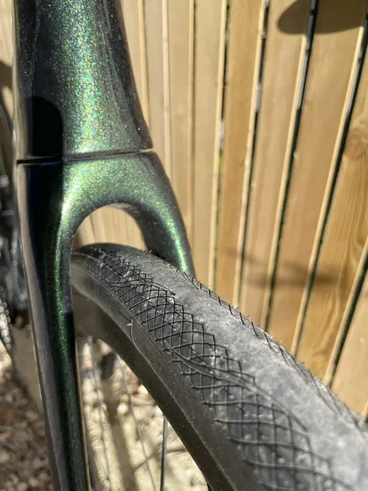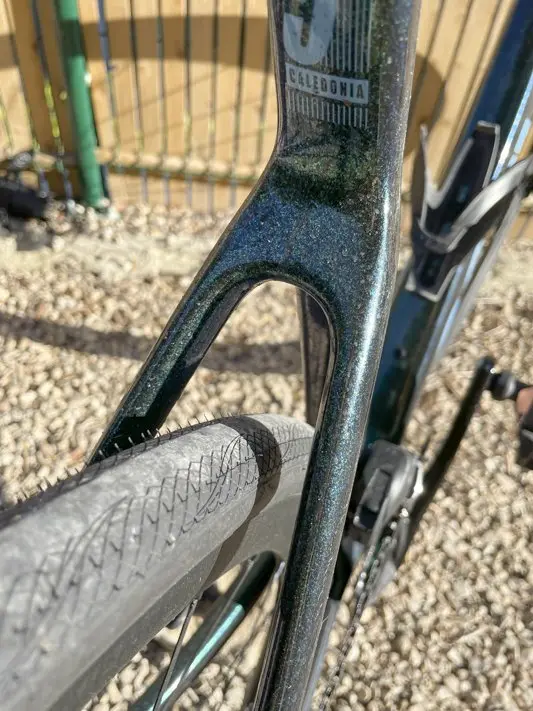 Le passage des pneus accepte des sections jusqu’à 34 mm (31 mm dans le cas de l’utilisation de gardes boues, puisque le Caledonia dispose de petites attaches dissimulées).