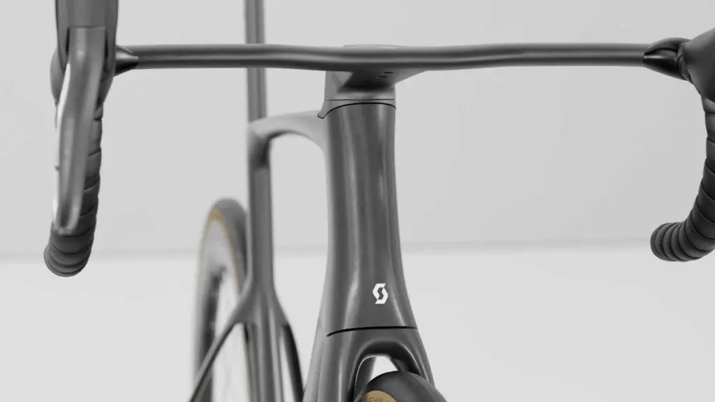 La direction offset brevetée de Scott permet un passage de câble entièrement intégré pour les changements de vitesse mécaniques et électroniques. Avec des formes et dimensions de tubes modifiées, le vélo intègre des conceptions aérodynamiques méticuleuses qui fonctionnent en cohérence et comme un système complet pour des gains significatifs en roulant. Grâce à des tests intensifs, même les plus petits détails ont été pris en compte, y compris les étriers de frein à disque cachés pour réduire la traînée et ajouter à l’esthétique globale du vélo.