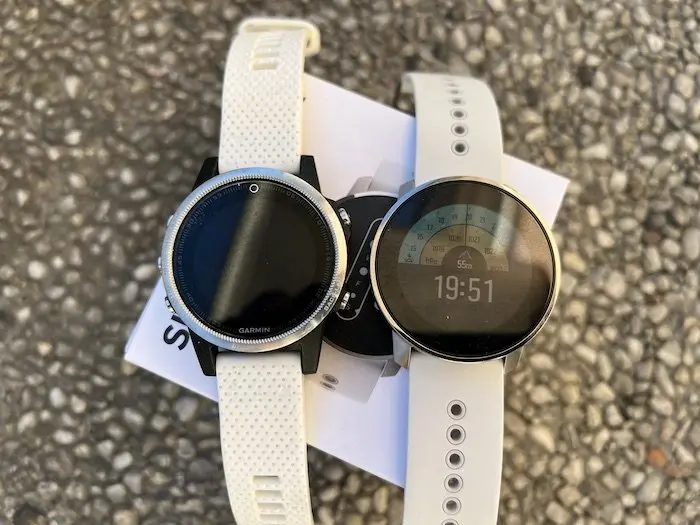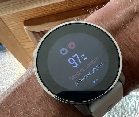 - Un capteur cardiaque au poignet de nouvelle génération. La marque finlandaise l’annonce comme plus précis que pour les modèles précédents, mais dans les faits il ne pourra jamais remplacer totalement une ceinture cardiaque, notamment si l’on doit suivre un plan d’entrainement avec des intensités précises. La fiabilité de ce type de capteur dépend de plusieurs facteurs, et notamment le serrage de la montre. Pour notre part, nous avons constaté plus de précision et de réactivité en changeant de bras, et en plaçant la montre à l’envers (avec le boîtier à l’intérieur du poignet). Cette fonction reste tout de même intéressante pour vérifier la fréquence cardiaque au repos.