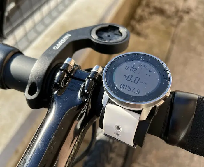 Pour y remédier, Suunto propose en option un support de cintre, pour conserver la montre sous les yeux sur le poste de pilotage. Mais celui-ci n’est compatible qu’avec les cintres ronds, alors que de nombreux vélos modernes sont équipés désormais de postes de pilotage aérodynamiques. Ce montage implique également le port d’une ceinture de fréquence cardiaque compatible (qui communique en Bluetooth avec la montre), et ne permet pas de bénéficier du capteur au poignet. D’ailleurs, comme nous avons pu le vérifier, celui-ci offre une précision incertaine en plein effort, et qui ne sert en réalité que d’indication par rapport à une ceinture connectée à un compteur Garmin, à un compteur Hammerhead, ou à la montre Suunto. Même réflexion concernant l’oxymètre de pouls, suffisant pour détecter un problème physique grave, mais pas suffisamment précis pour mesurer les capacités d’adaptation à l’altitude.