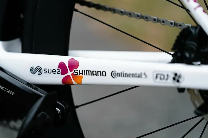 Le design très coloré reflète également l’état d’esprit, le côté souriant et dynamique que les cyclistes de l’équipe FDJ-SUEZ-FUTUROSCOPE dégagent lors de chaque course.