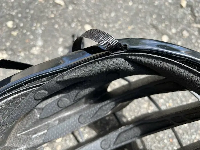 En ce qui concerne les détails, on apprécie la finition haut de gamme de la coque en polycarbonate, qui devrait améliorer de façon notable la durée de vie du casque, avec beaucoup moins de parties en polyester exposées aux petits chocs lors du transport du casque. Les ports de maintien des branches de lunettes sont également très bien pensés, lorsqu’il est nécessaire de les placer sur le dessus du casque, dans le cas d’une longue ascension de col par exemple.
