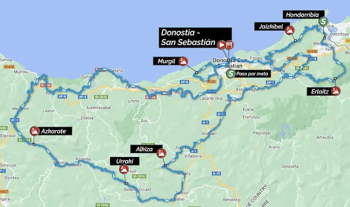 La carte du parcours de la Classica San Sebastián 2022