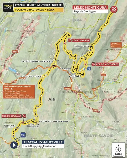 - Jeudi 11 août : 3e étape / Plateau d’Hauteville – Lélex (129 km, 3 214 D+, arrivée estimée vers 15h45)