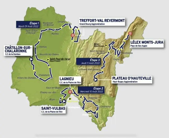 Partager la publication "PROS – Tour de l’Ain 2022 : le parcours, les cartes, les profils des étapes, les équipes engagées et les horaires de diffusion TV de la 34e édition"