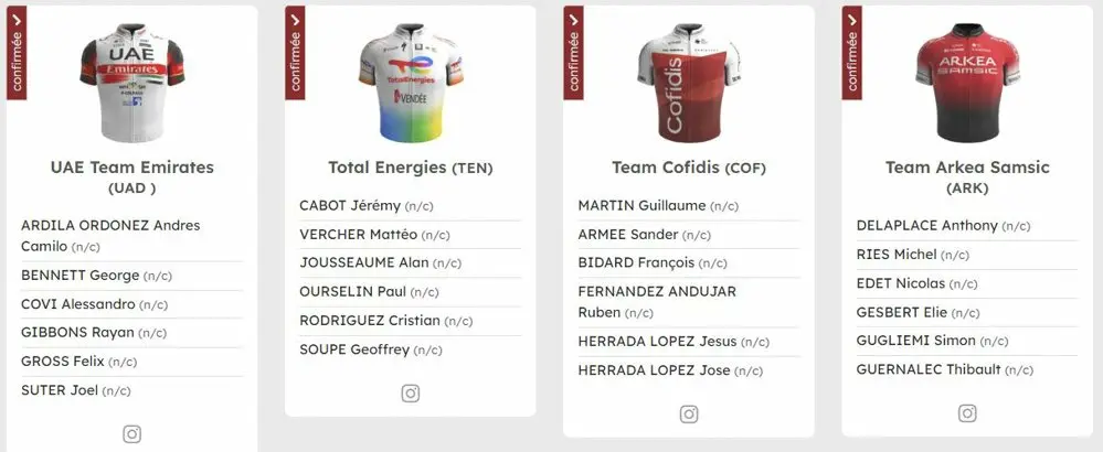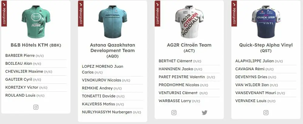 Les équipes et coureurs engagés sur le Tour de l’Ain 2022