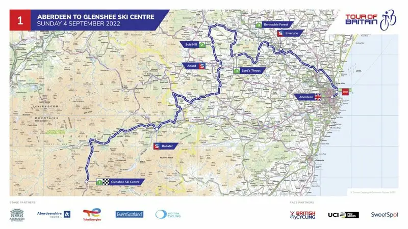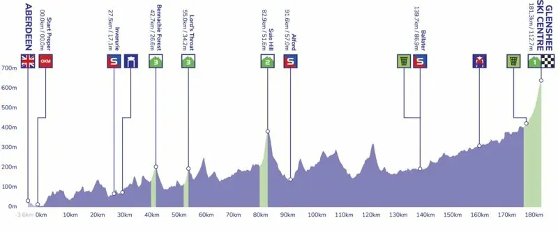Dimanche 4 septembre, 1re étape Aberdeen-Glenshee Ski Centre (181,3 km)