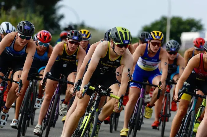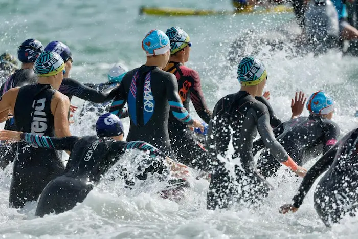 En revanche, la double médaillée du championnat d’Europe de Munich (bronze en individuel et or en relais mixte), Emma Lombardi est bien présente dans le box de départ du Vals Dauphiné Olympic. Celle-ci se fait remarquer d’entrée de jeu en sortant la première de l’Océan Atlantique devant Lola Bachet (Saint-Avertin Sports Triathlon 37) et Léa Coninx (Poissy Triathlon). Ce trio est présent dans le groupe d’échappées de 28 concurrentes qui se forme rapidement. Tous les favorites sont là excepté la Hongroise Zsanett Bragmayer (Metz Triathlon) et Célia Merle (Issy Triathlon).