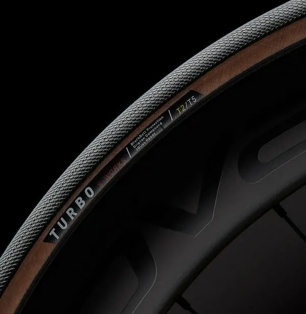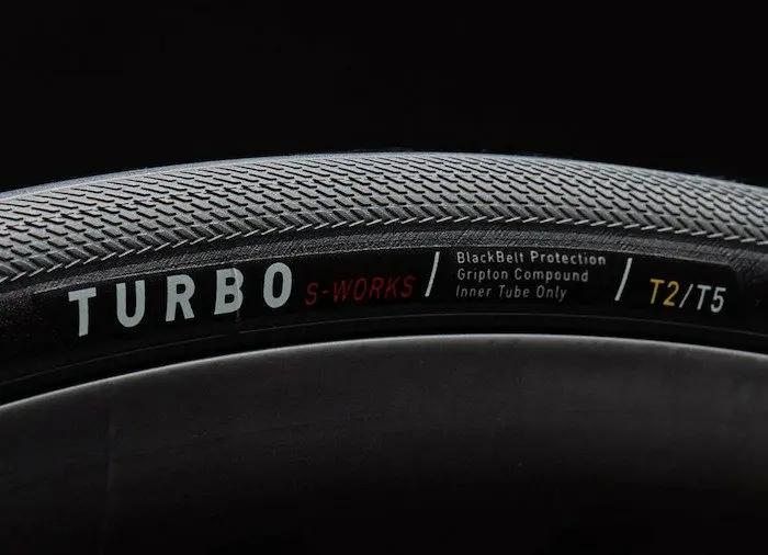 À cette gamme S-Works s’ajoute le pneu Turbo Pro T5 pour chambre à air, avec une carcasse 60 TPI et le composé T5, pour une bonne combinaison de faible résistance au roulement, d’adhérence et d’endurance.
