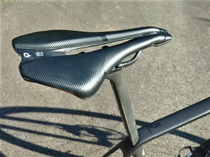 Par ailleurs, la différence de « traitement » dans la rigidité entre l’avant et l’arrière aurait pu rendre le vélo peu homogène voire déséquilibré. Mais il n’en est rien et le R5 apparait comme un vélo à deux visages : suffisamment tolérant à allure réduite assis avec un petit braquet, il semble se « tendre » dès que le cycliste met les watts en danseuse.