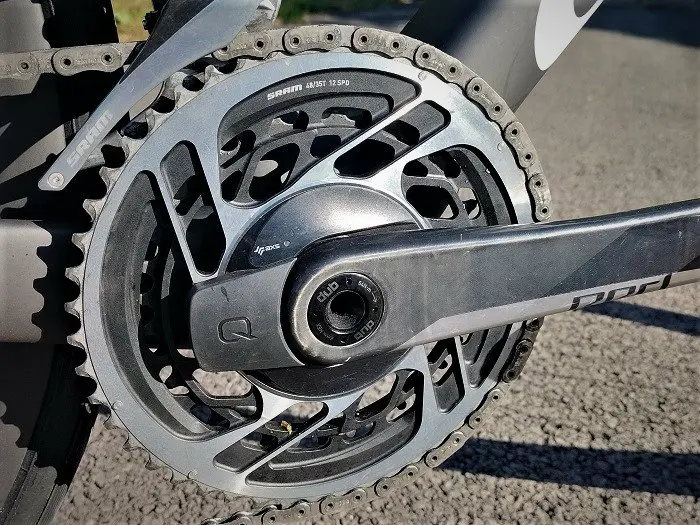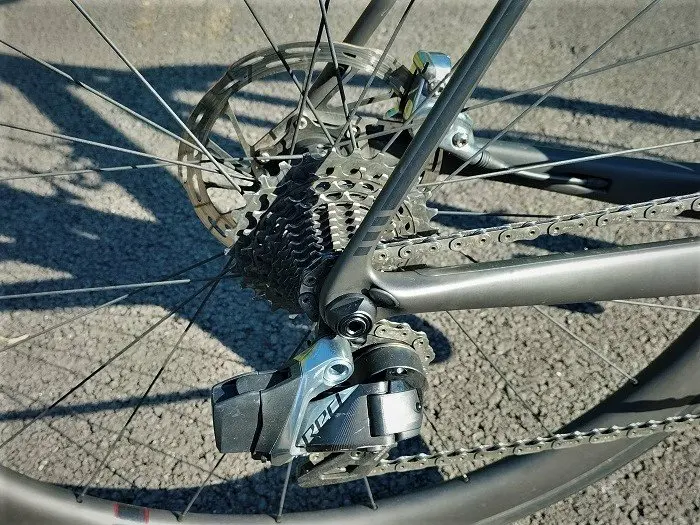 Cette réserve mise à part, le groupe Sram est très agréable à utiliser. Esthétique, intuitif, rapide et ergonomique, il appelle de nombreuses louanges. Par ailleurs, les développements proposés peuvent dérouter. En combinaisons de 48-35 et 10×28, la sensation d’enrouler le braquet est différente d’une gamme plus classique, d’autant plus en comparant avec des plateaux en 53-39. À noter que le vélo est livré d’origine avec un capteur de puissance, un moindre mal étant donné le tarif réclamé pour le vélo complet (11 999 €). La version équipée en Sram Force s’affiche à 8 799 €.