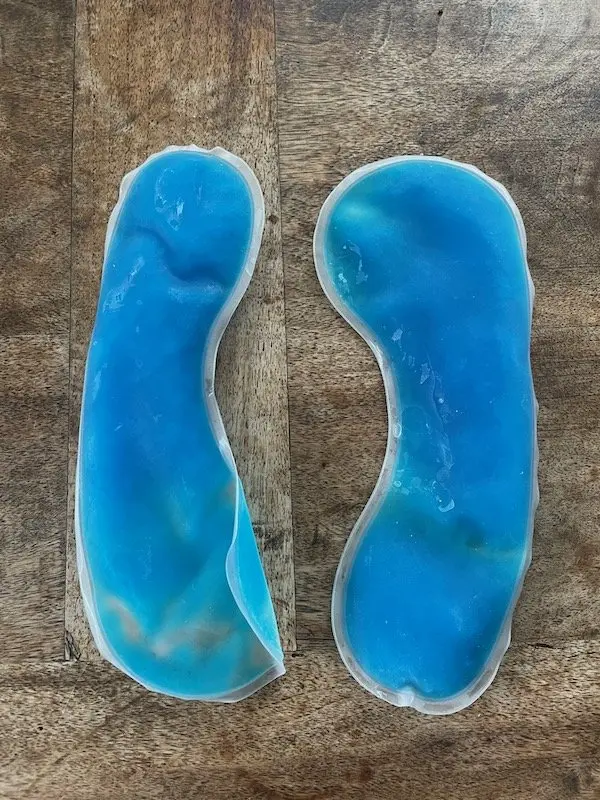 La structure est composée d’une genouillère dans laquelle on vient y glisser deux petites poches de gel glacé préalablement passées par le congélateur congélateur. On l’enfile ensuite autour du genou. La taille unique permet de s’adapteur à toutes les morphologies.