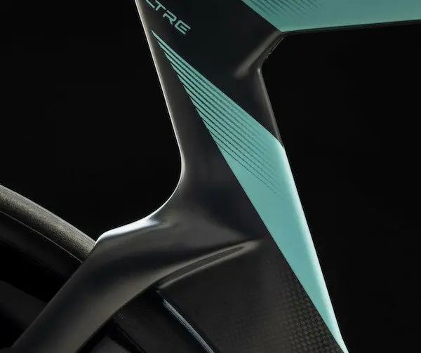 Le concept prend la forme de deux découpes verticales en forme d’évent placées de chaque côté du tube de direction pour canaliser le flux d’air. La marque indique que le système agit comme l’aileron d’une Formule 1, puisque c’est l’une des premières surfaces à interagir avec le flux d’air. Son fonctionnement jouerait ainsi un rôle central dans le profil du cadre. Le tube supérieur présente une arête qui s’aligne sur la crête supérieure des déflecteurs d’air. Le tube diagonal a lui aussi été dessiné en fonction du système.