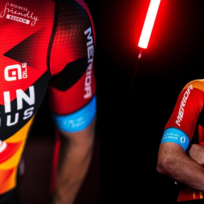 Un changement dans la continuité pour l’équipe Bahrain Victorious. En effet, le maillot toujours fabriqué par Alé, n’est que peu modifié par rapport à la version 2022. Les têtes d’affiche de l’équipe sont toujours Mikel Landa, Matej Mohoric ou encore Pello Bilbao.
