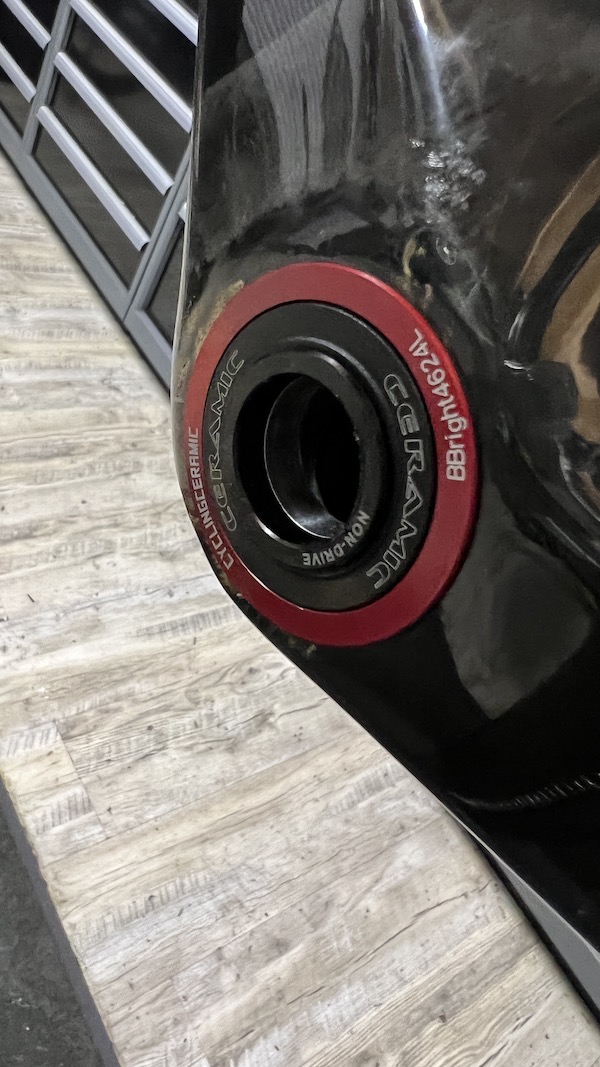 Choisi pour remplacer un boîtier acier classique sur un cadre Factor au format BBRight (comme Cervélo), le boîtier CyclingCeramic s’affiche à 99 g sur la balance, contre 115 g pour le boîtier d’origine.