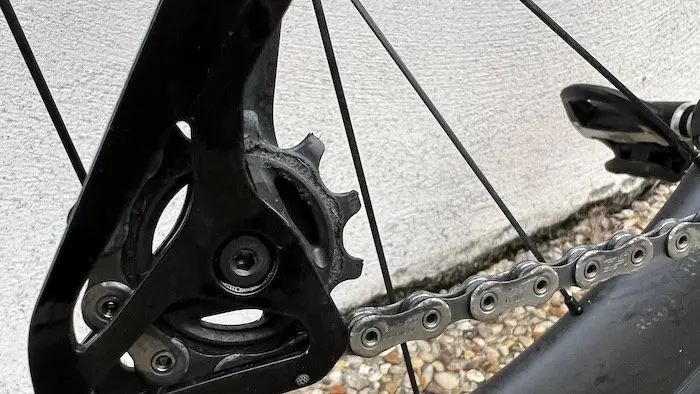 Pour finir avec les pièces d’usure, un mot sur les roulements. Bien que pas exceptionnellement fluides dès le début, les galets de dérailleur conservent un bon fonctionnement, sans accroche et sans bruit, même après 15 000 km. Rien à dire de ce côté-là, la fiabilité est au rendez-vous.